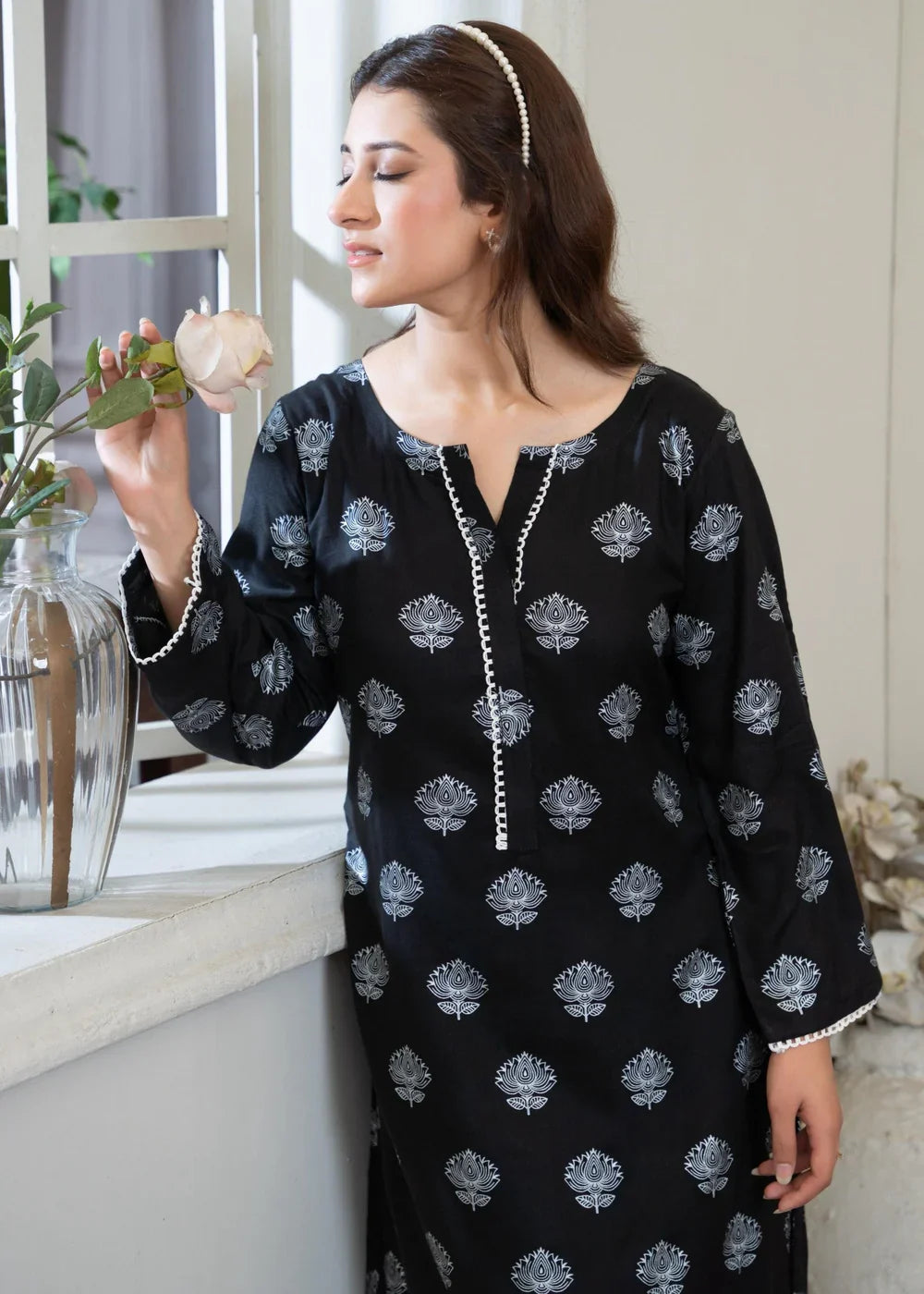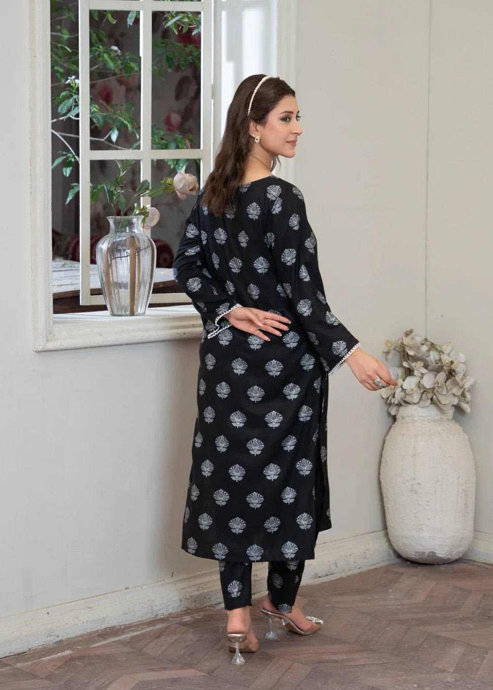 Additional Description: Step into timeless elegance with "Black" by Noor e Fishan – a graceful expression of bold sophistication. Crafted from premium lawn cotton, this ensemble combines breathable comfort with a classic deep black hue, perfect for both daywear chic and evening allure. Its refined silhouette and effortless fall make it a staple piece in your summer wardrobe, blending tradition with modern flair.